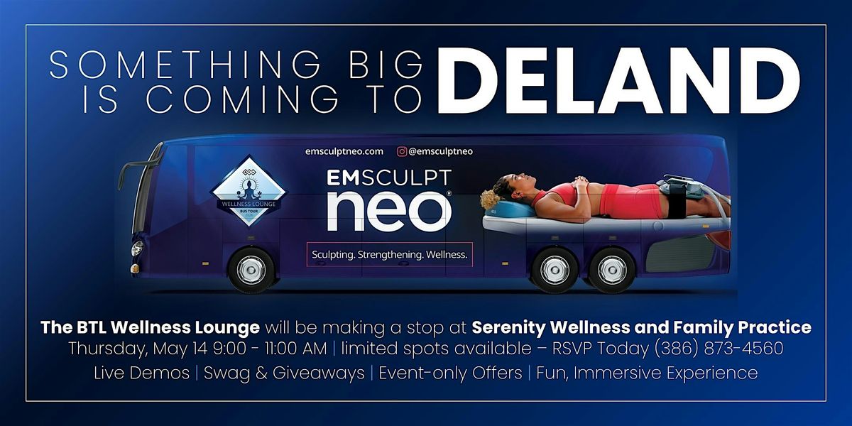 The BTL Wellness Lounge is rolling into Serenity Wellness and Family Practice in DeLand, FL for a limited-time, in-person experience designed to help you explore today's most talked-about wellness and aesthetic technologies -- through live, guided demos.