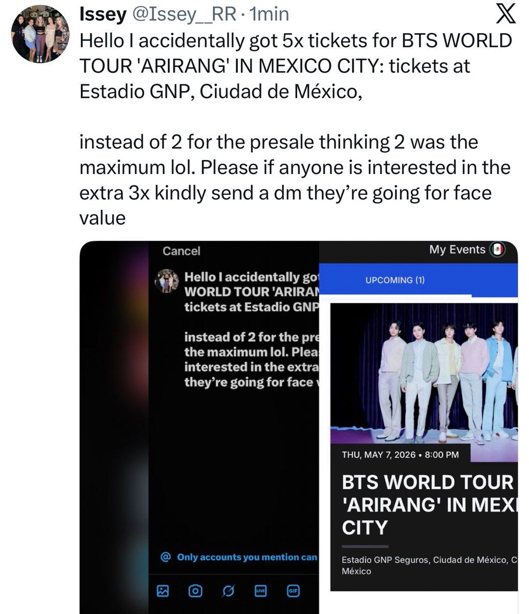 BTS at Estadio GNP Seguros🌟 Step into a world of wonder at BTS Mexico City Tickets, where extraordinary moments await! 🏛️ Located at Estadio GNP Seguros in dynamic Ciudad de México, MX, this event will become the talk of the town. 📅 Join us on May 7th, 2026 at 07:00 PM for a celebration that defies the ordinary. ✨ This curated experience brings together the best of entertainment, culture, and community spirit. Every detail has been thoughtfully planned to ensure an unforgettable experience for all our guests. 🎯 Take advantage of this opportunity to be part of something special. 💫 Book now at 703.12 EUR. 🎊 Early registration is recommended as space is limited!