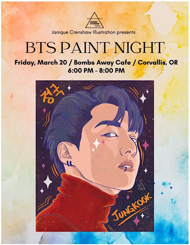 Grab your besties, order your favorite drink, and spend the night painting your BTS bias in watercolor. We’ll have black-and-white print outs of all the members ready for you to trace (super beginner-friendly), or you can bring your own 8.5 x 11 printout if you’re loyal to a specific member.