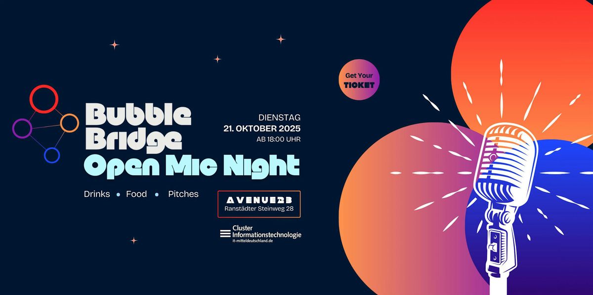 Als Querschnittstechnologie will die Leipziger Digitalwirtschaft dabei nicht nur im eigenen Ökosystem wachsen, sondern vor allem Impulse in andere Branchen tragen – etwa zu Anwendern in Industrie, Logistik oder Gesundheitswirtschaft. BubbleBridge ist eine Veranstaltungsreihe von Cluster IT Mitteldeutschland gemeinsam mit dem Mitgliedsunternehmen iProjects Management.