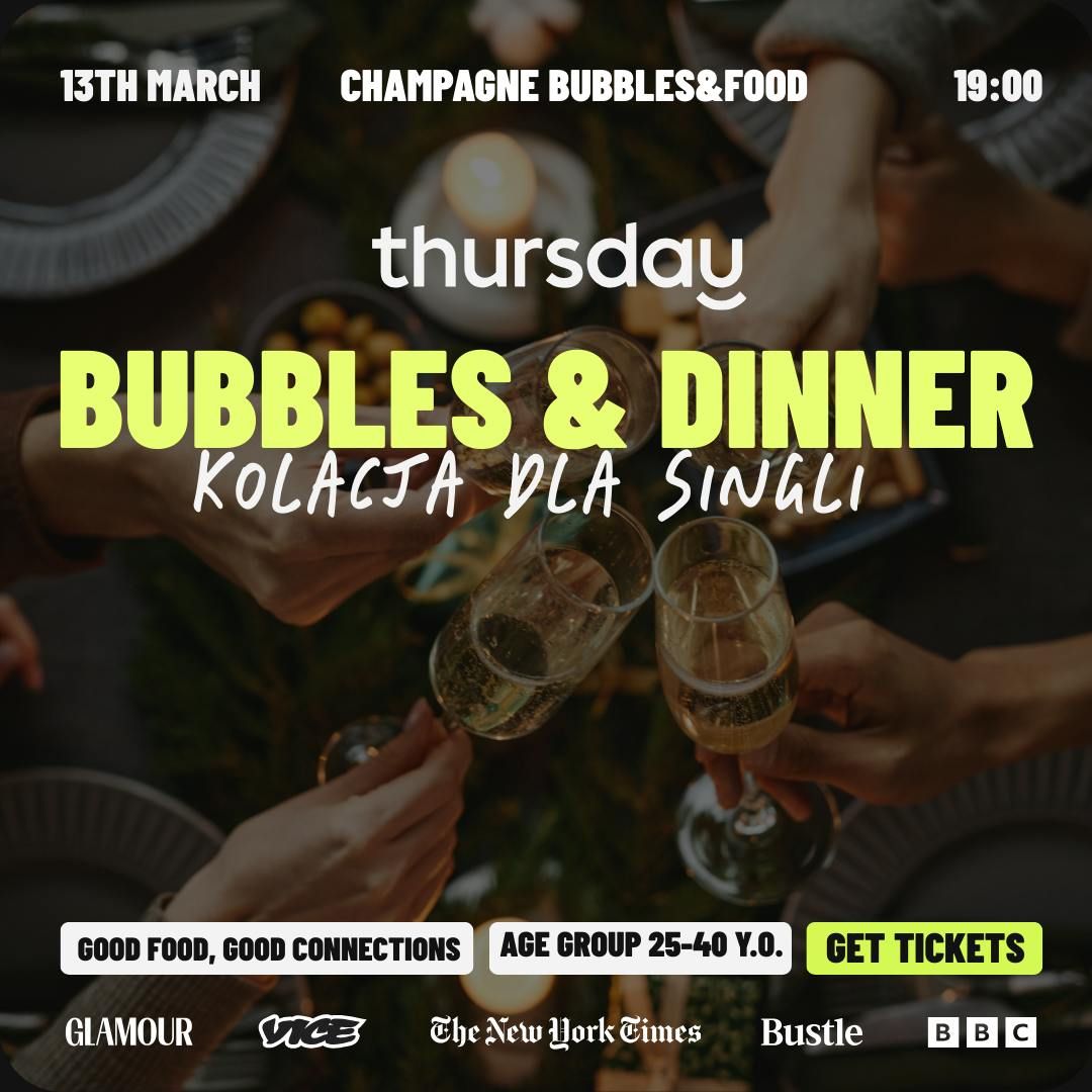 13 marca spotykamy się w eleganckiej przestrzeni Champagne, Bubbles & Dinner na kameralnej kolacji dla singli w wieku 25–40 lat.