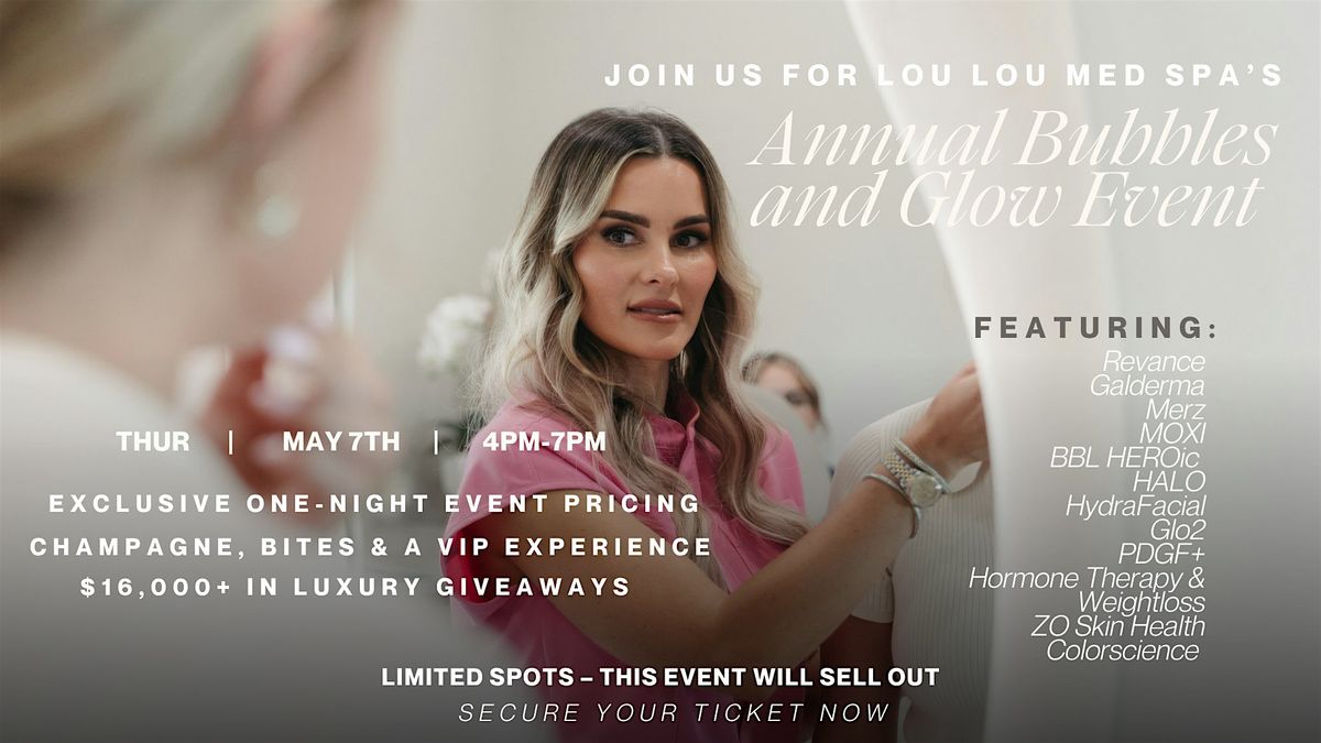 Don't miss out! You're invited to Bubbles + Glow, an afternoon dedicated to luxury and rejuvenation. Join us on May 7, 2026, from 4:00 PM - 7:00 PM for a curated experience featuring our most sought-after products and treatments.