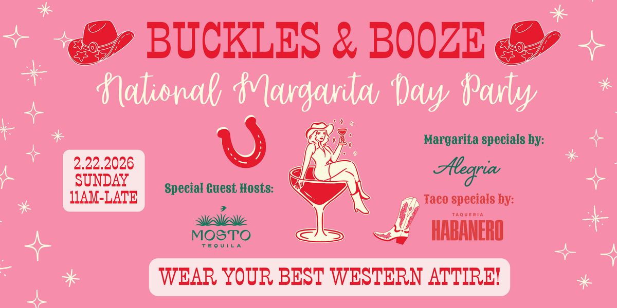 Alegria Bar presents Buckles & Booze, a high-energy National Margarita Day party.