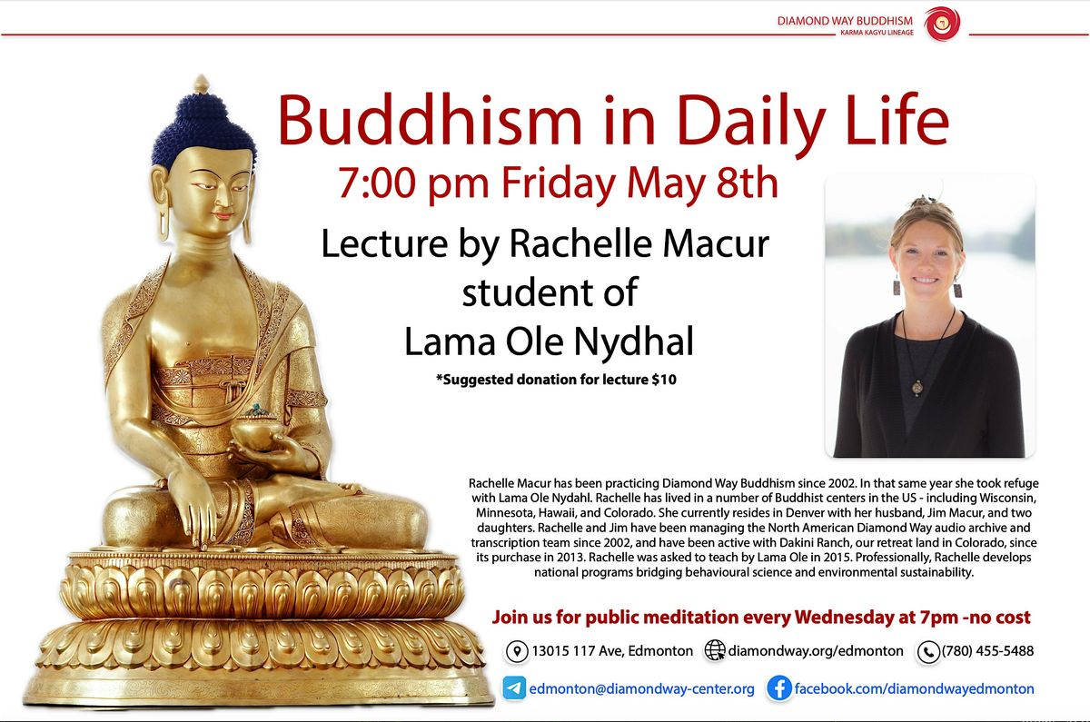 Join us for a teaching weekend with Rachelle Macur at our Diamond Way Buddhist Centre in Edmonton. Rachelle Macur has been practicing Diamond Way Buddhism since 2002. In that same year she took refuge with Lama Ole Nydahl. Rachelle has lived in a number of Buddhist centers in the US - including Wisconsin, Minnesota, Hawaii, and Colorado. She currently resides in Denver with her husband, Jim Macur, and two daughters. Rachelle was asked to teach by Lama Ole in 2015. Professionally, Rachelle develops national programs bridging behavioural science and environmental sustainability.