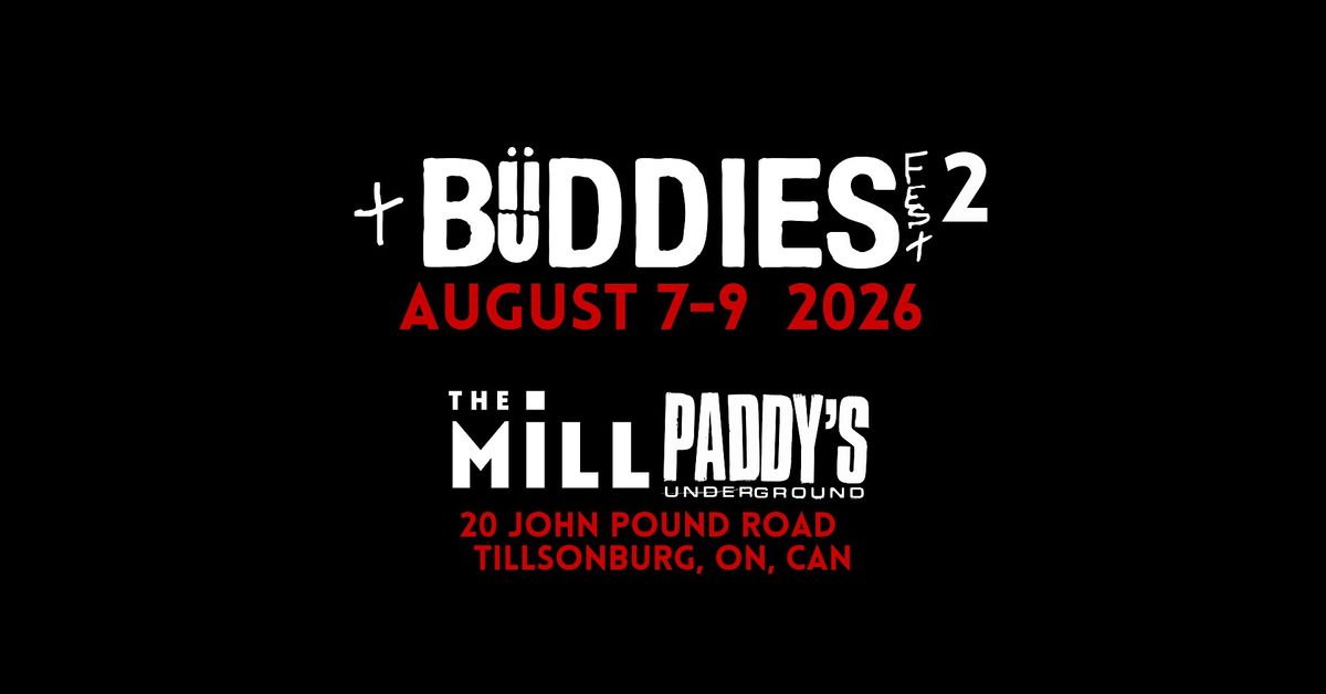 Buddies Fest mainstage will be outdoors behind The Mill Inn & Eatery with a 500 person capacity. A second stage will be indoors at Paddy's Underground with a 80 person capacity. Both stages are located at 20 John Pound Road in Tillsonburg, Ontario, Canada.