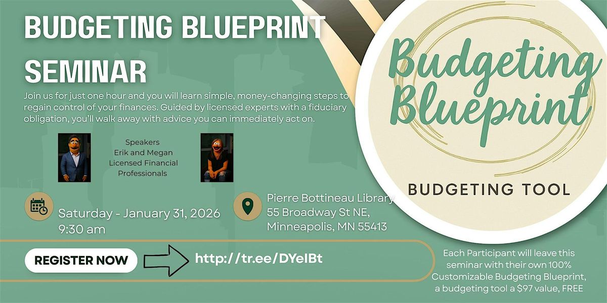 Added BONUS, everyone who attends this seminar will receive our Ultimate Budget Blueprint Tool, (worth $97) FREE!