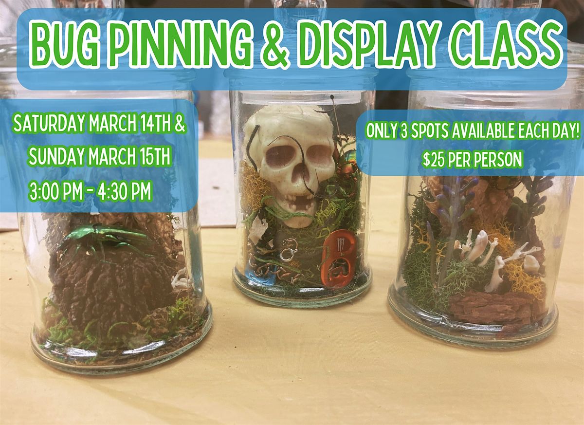 If you're brand new to bug pinning or just want a fun insect-themed way to spend an afternoon, this class is for you! Come hang out at Bones In Jars, learn how to pin bugs, and display them in unique, creative ways! There will be various beetles to choose from as well as decorations to display them with!