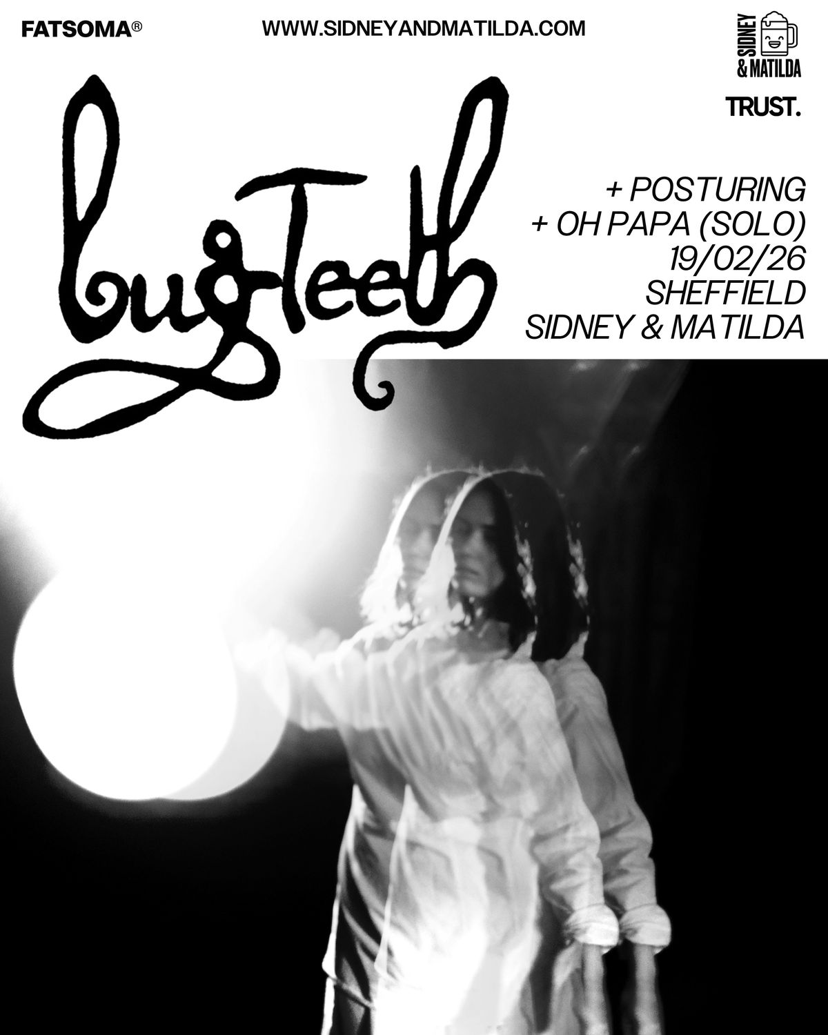 Born from a DIY spirit, Bug Teeth began as the electronic bedroom project of front-person PJ Johnson, who self-produced spectral melodies. From these delicate, lo-fi beginnings emerged a raw, celestial sound, drawing listeners into its unique gravity. Over time, the project grew into a full band. Bug Teeth’s live performances are both fragile and ferocious, a hypnotic push and pull between distortion and stillness.