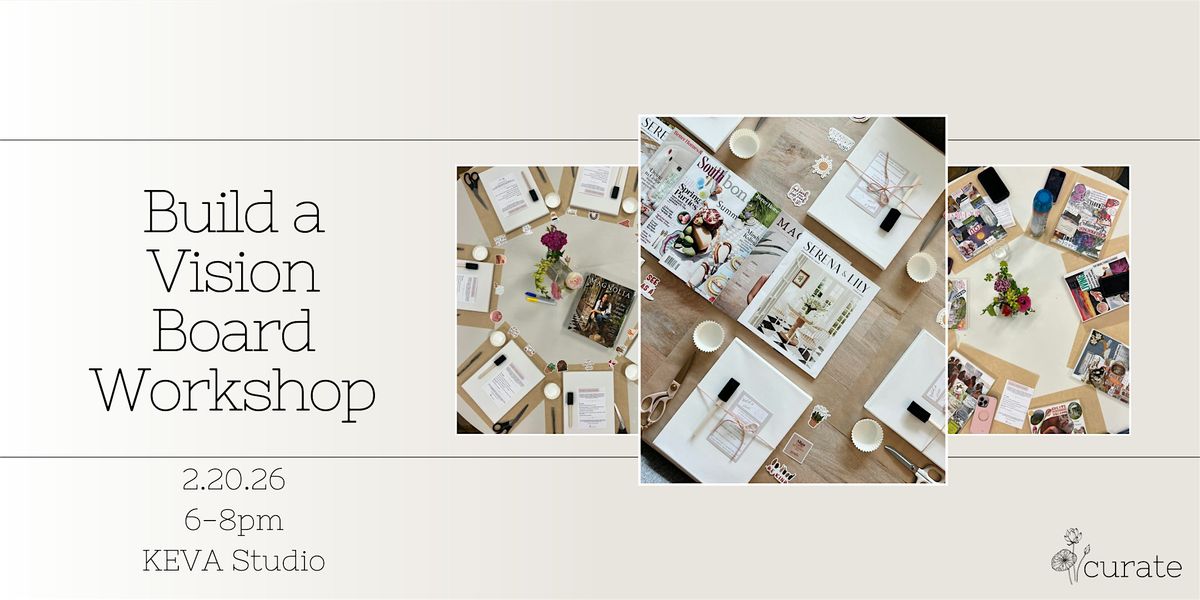 curate’s build a vision workshop is a creative and inspiring way to pause, reflect, and dream big—together. Each ticket includes instructor-guided workshop, all materials needed to create your own 9x12" canvas vision board, and a bespoke take-home instructional guide that includes thoughtful prompts and reflective questions.