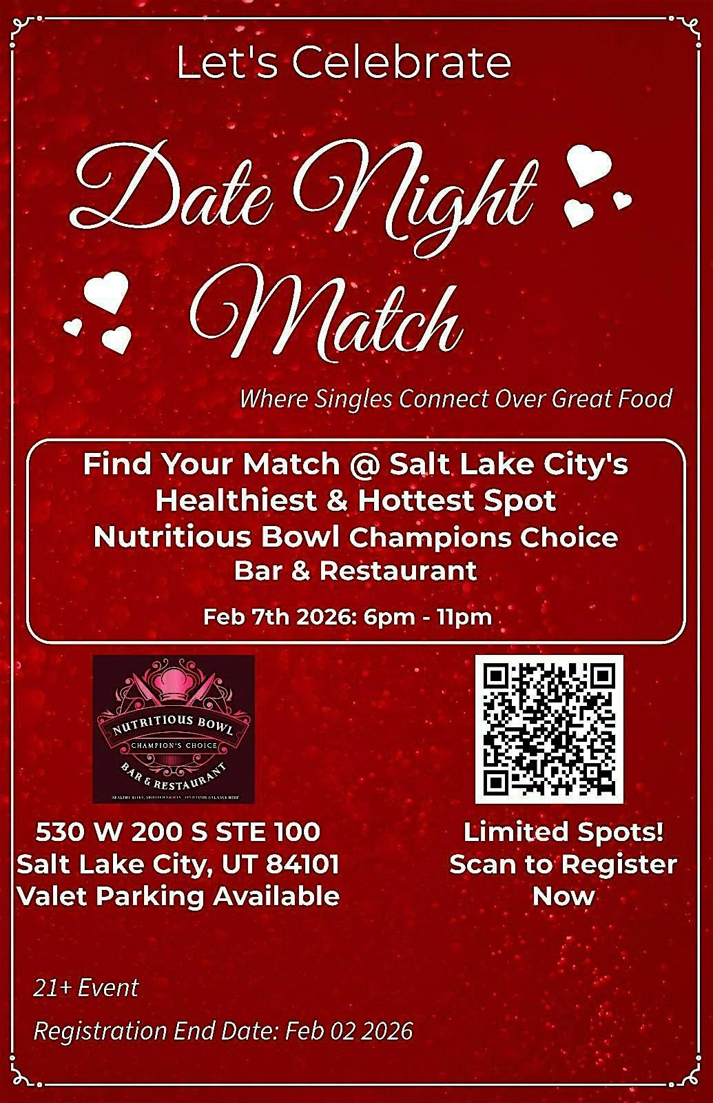 Info: Valet Parking available for $21 (Optional).https://www.nutritiousbowls.com/events/date-night-event