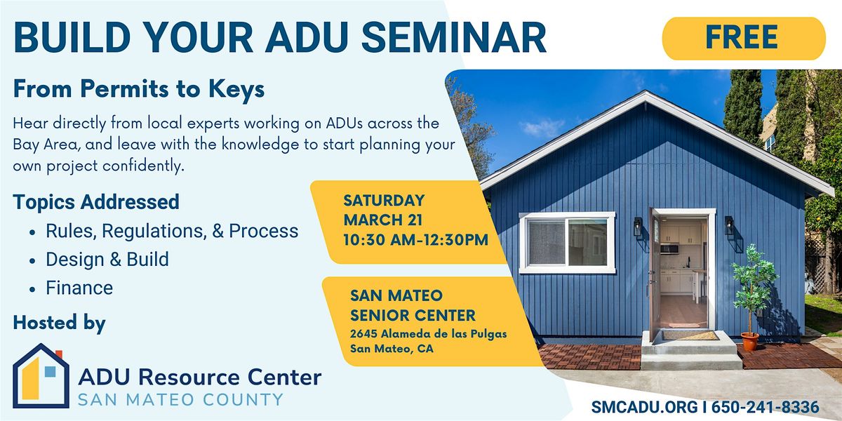 Ready to dive into the world of Accessory Dwelling Units? Join us in person for a casual, info-packed session where you'll learn all the basics about building your own ADU. Whether you’re looking to house family or invest smart, this seminar has got you covered. Meet experts, ask questions, and get inspired to start your ADU journey!