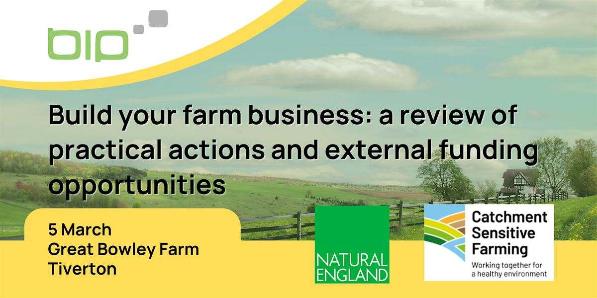 This event is for farmers looking for real world experience and guidance on farming for business growth, while protecting soil and water quality. We will be discussing the challenges of farmers today and the practical steps being taken to combat these, while protecting soils and water resources. You’ll also get sector-leading guidance from Business Information Point farm advisors including the farm funding landscape - what's available, what's coming, and what you can do to prepare.