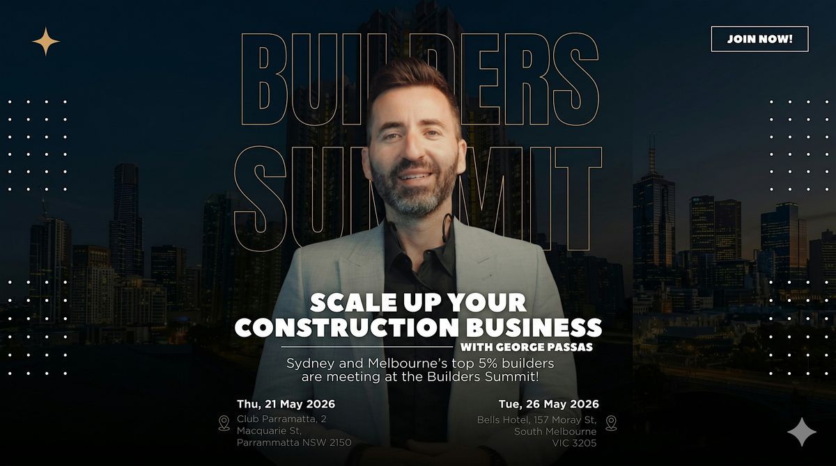 Having worked on some of Melbourne's most iconic construction sites, George's experience and passion for helping builders succeed in all their wants, conditions, methods, and how-tos makes this a not-to-be-missed event for any builder serious about growth.