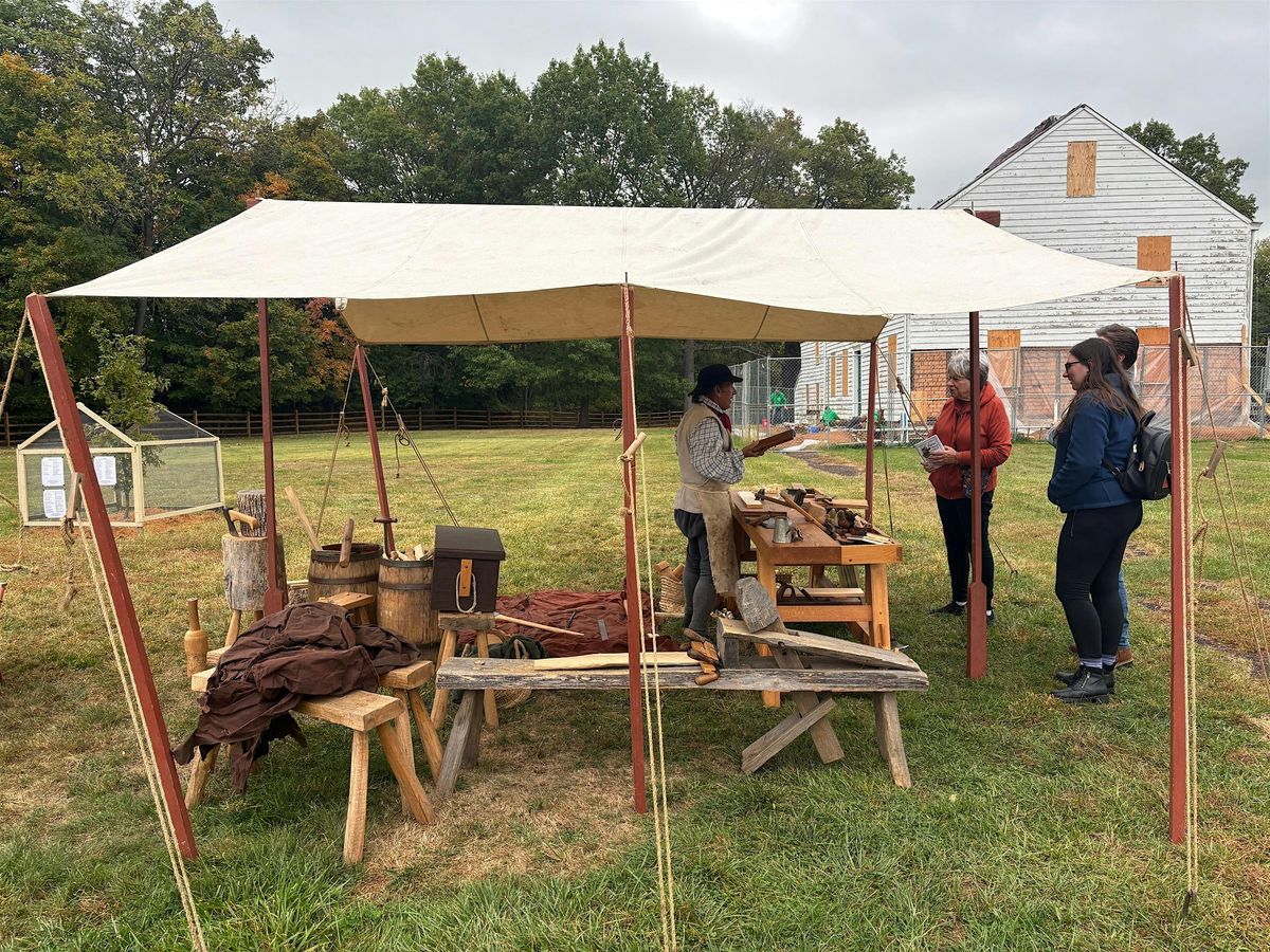 Reenactor Scott Lance practices historic carpentry and the Old Millstone Forge Association demonstrates blacksmithing on the grounds of the Wallace House. Interactive exhibits introduce the traditional techniques and sustainable materials including oak and pine, earth and flax, cedar and stone used in the construction of the Wallace House 250 years ago and in the rehabilitation of the Wallace House underway today.