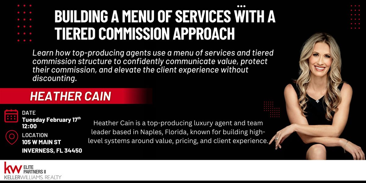 Get ready for an in-person event packed with practical insights! this session will dive into how top-producing agents structure a clear, strategic menu of services using a tiered commission approach to confidently communicate value—without discounting.