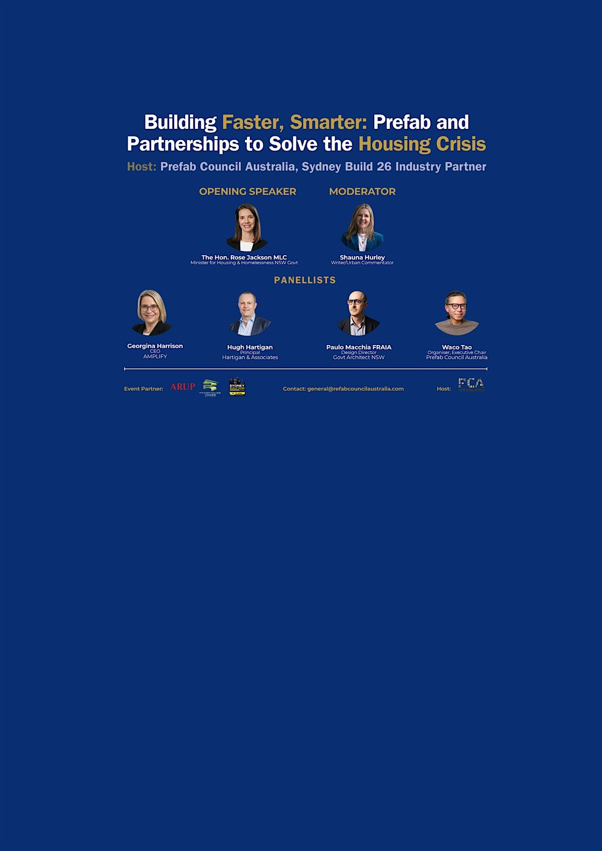 Hosted as part of Sydney Build Expo 2026, this 2.5-hour event brings together key voices across government, design, and construction to unpack the role of prefab in delivering housing faster, more efficiently, and at scale.