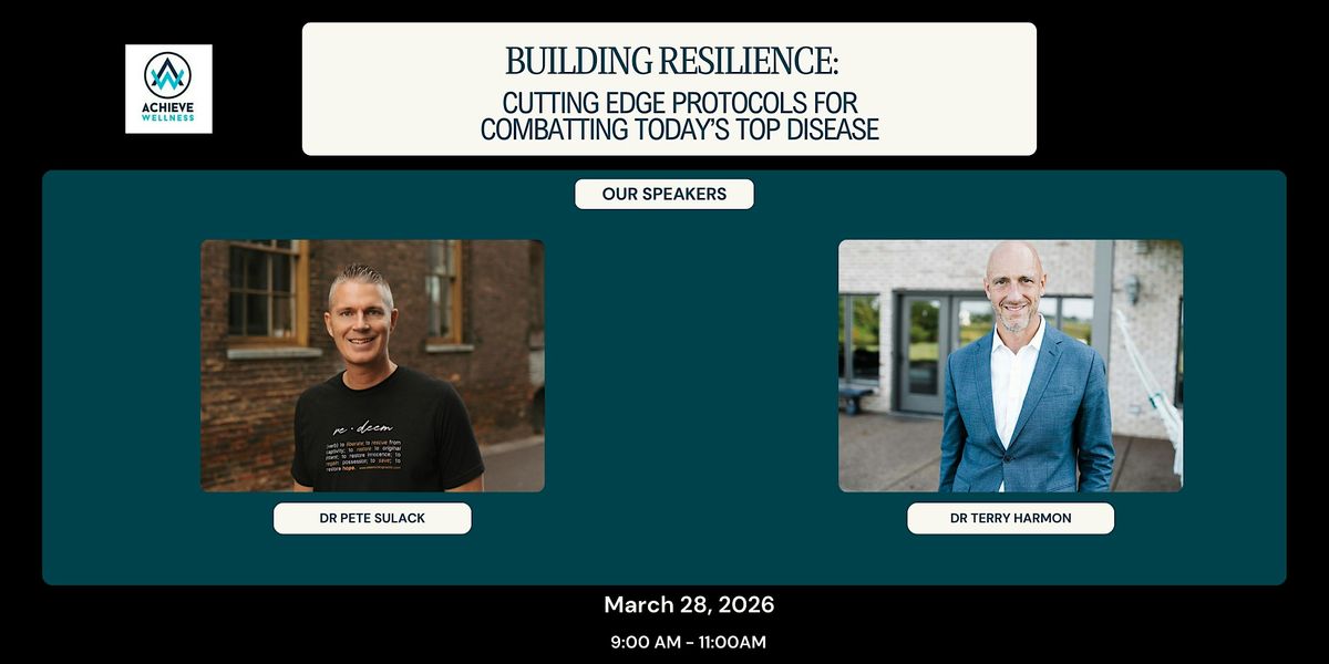 Join us for an empowering seminar, Building Resilience. with experts Dr. Pete Sulack and Dr. Terry Harmon where we'll explore cutting edge protocols designed to combat today's most prevalent diseases. You will leave equipped with practicical tools, faith anchored insight, and forward thinking strategies to strengthen the body, restore balance, and support long term wellness. Come ready to be informed, encouraged, and inspired t otake an active role in building resilience from the inside out.