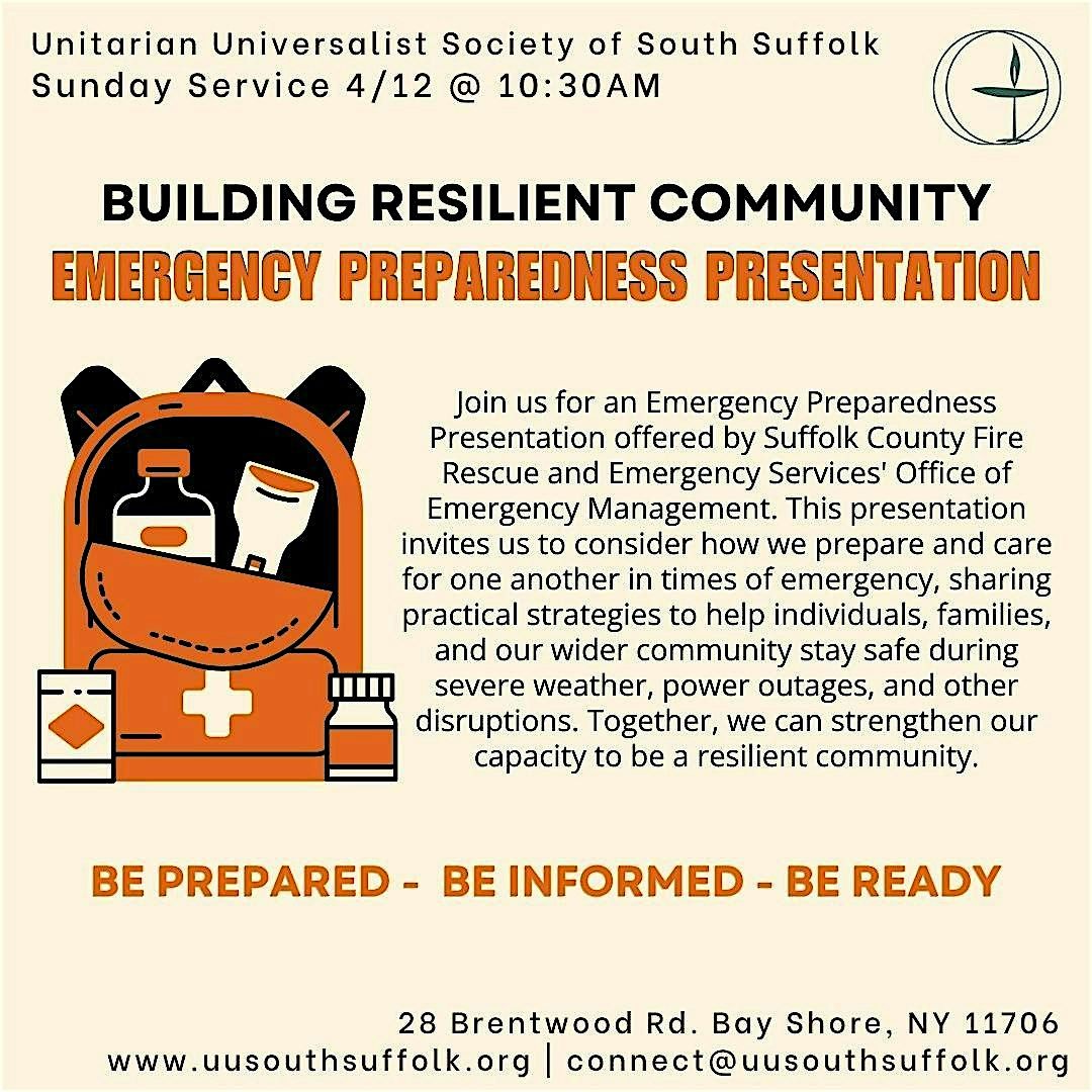 Join us for an Emergency Preparedness Presentation offered by Suffolk County Fire Rescue and Emergency Services' Office of Emergency Management. This FREE presentation invites us to consider how we prepare and care for one another in times of emergency, sharing practical strategies to help individuals, families, and our wider community stay safe during severe weather, power outages, and other disruptions. Together, we can strengthen our capacity to be a resilient community