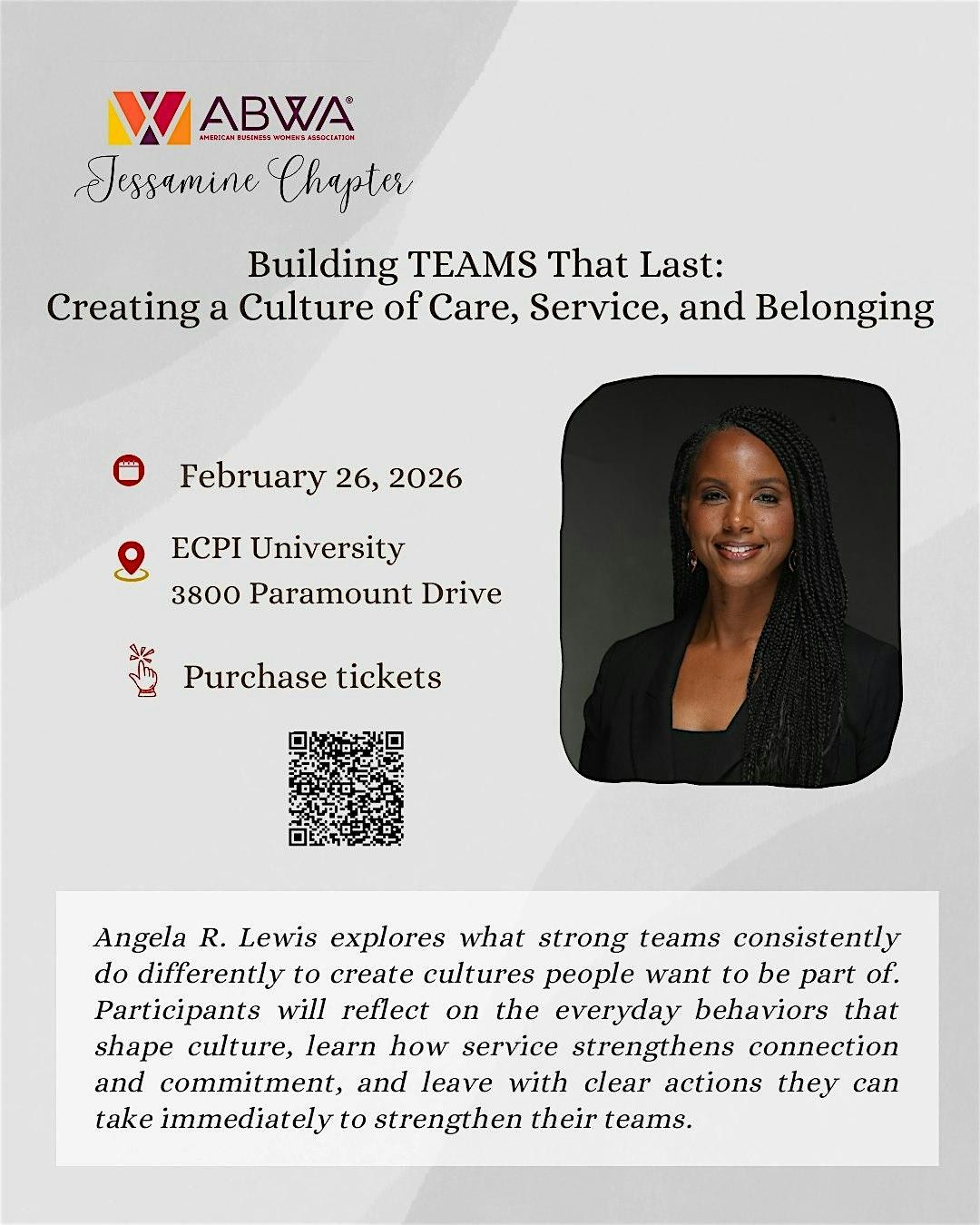 In this engaging and practical session, Angela R. Lewis explores what strong teams consistently do differently to create cultures people want to be part of. Drawing from her experience working with leaders and organizations around the world, Angela introduces the TEAMS framework, a simple yet powerful approach to building trust, energy, alignment, momentum, and service within any organization.