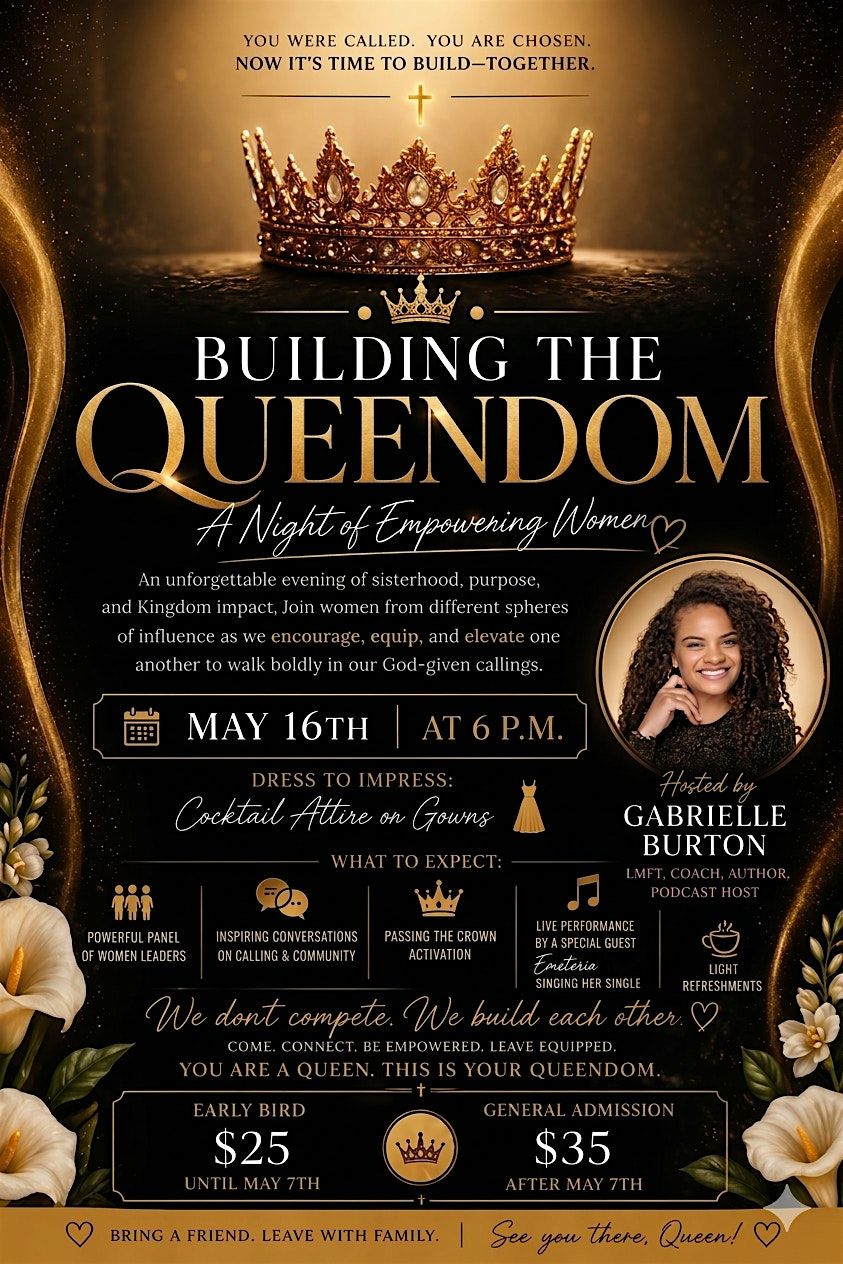 Join us for an unforgettable evening designed to empower, equip, and unite women who are boldly walking in their God-given calling. Building the Queendom is more than just an event—it’s an experience. Step into a powerful, Christ-centered atmosphere where women from diverse spheres of influence come together to share wisdom, cultivate authentic community, and champion one another in purpose.