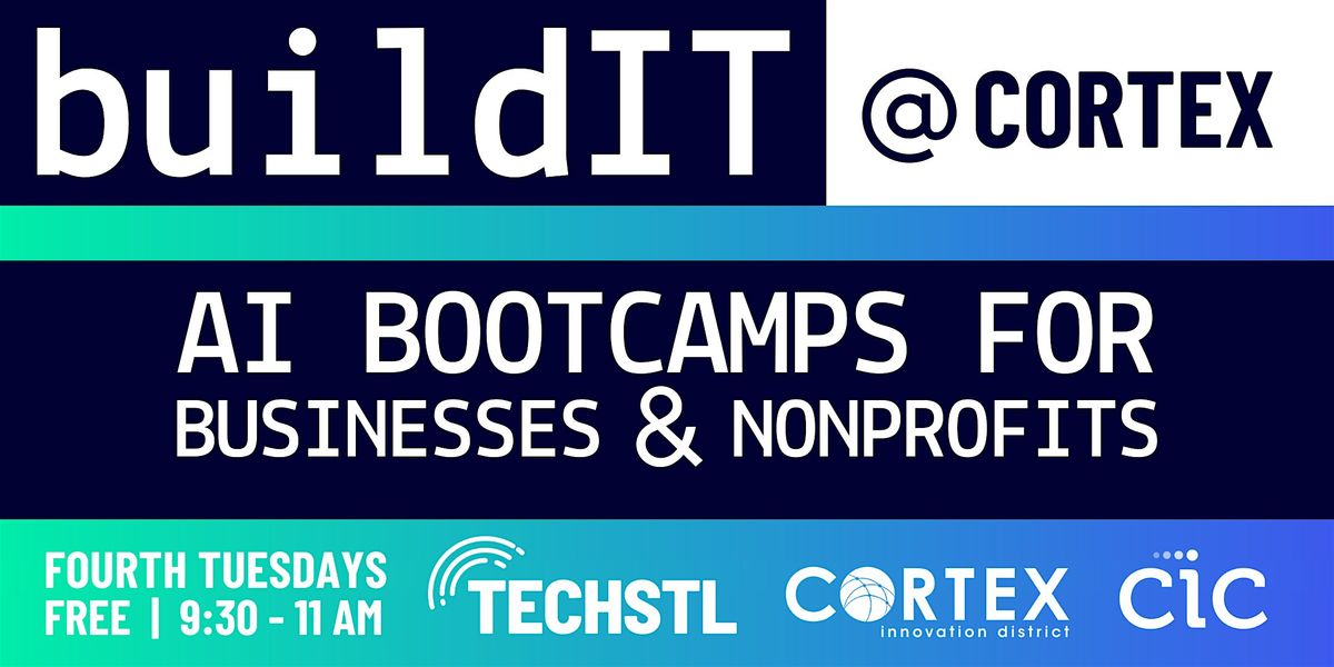 BuildIT AI Bootcamps are free, monthly, hands-on workshops designed to help Small Businesses, Startups, and Nonprofits confidently integrate Artificial Intelligence into their operations. Hosted at CIC @ Cortex and presented in partnership with TechSTL, Cortex, and CIC, each Bootcamp features a 90-minute practitioner-led session focused on practical, real-world AI applications.