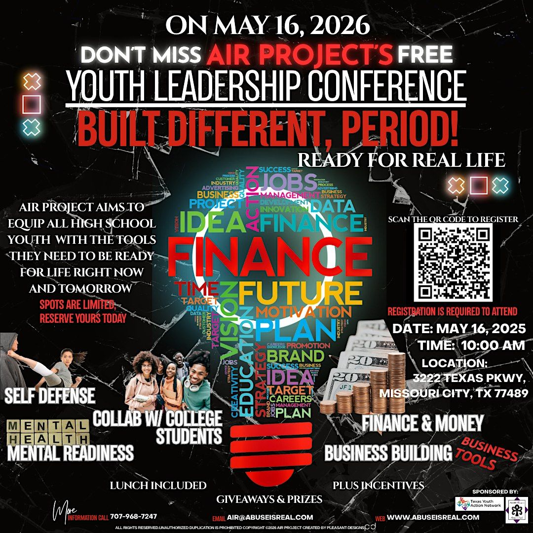 Get ready to experience something awesome and in person! This event is all about embracing your uniqueness and gearing up for real-life challenges with confidence. Join us for a day filled with energy, inspiration, and real talk. Don't miss out on connecting with like-minded high schoolers and college students who are also built different and ready to take on the world!