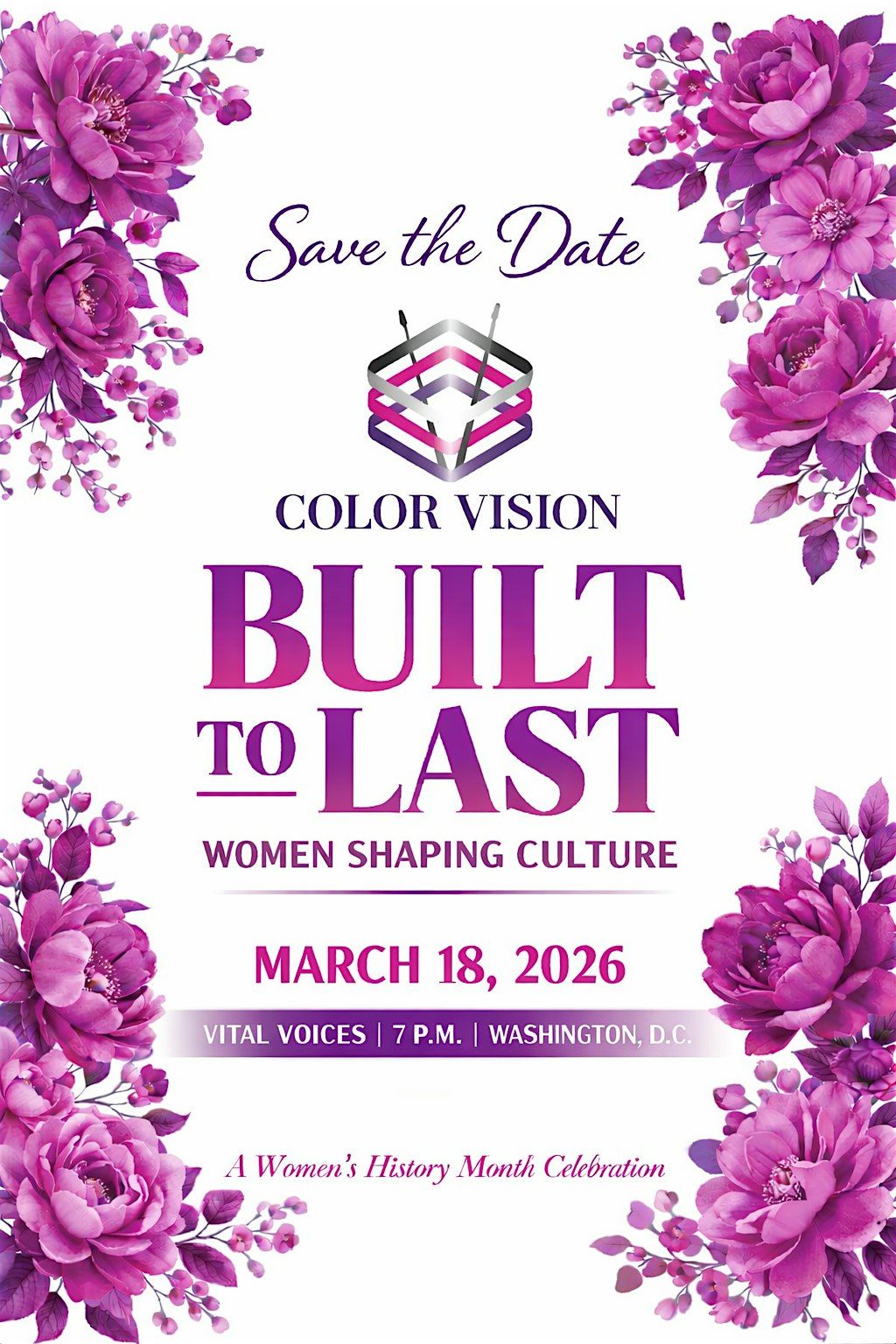 Join Color Vision for Built to Last: Women Shaping Culture, a powerful Women’s History Month experience featuring incredible panelists who are boldly building and leading across industries. Enjoy an inspiring live conversation, an open bar, and curated shopping with Black women owned vendors, all inside an intimate, high-energy room at Vital Voices in Washington, D.C.