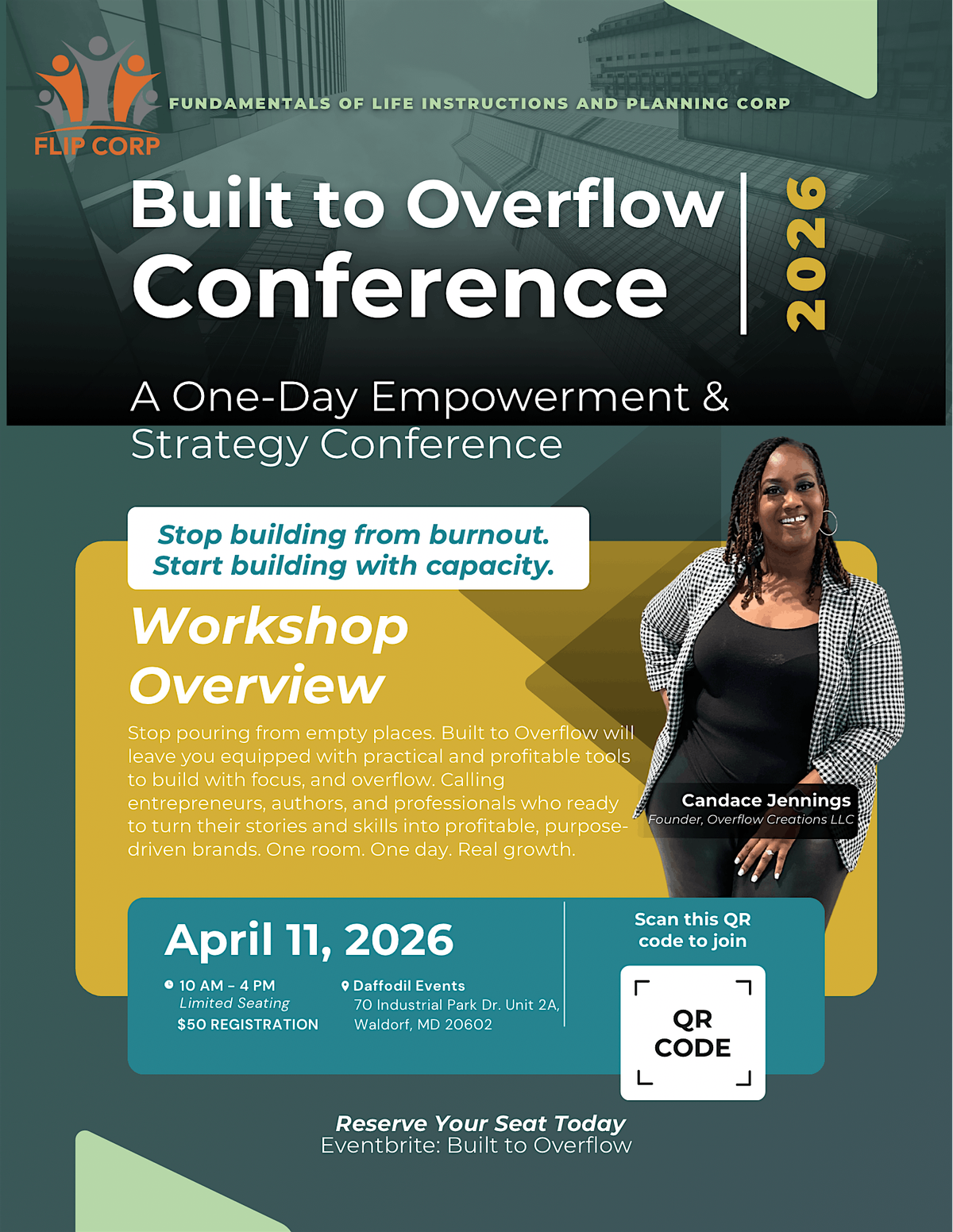 Built to Overflow Conference is a one-day empowerment and strategy experience designed for entrepreneurs, authors, and professionals who are ready to build sustainable, purpose-driven brands—without exhaustion.