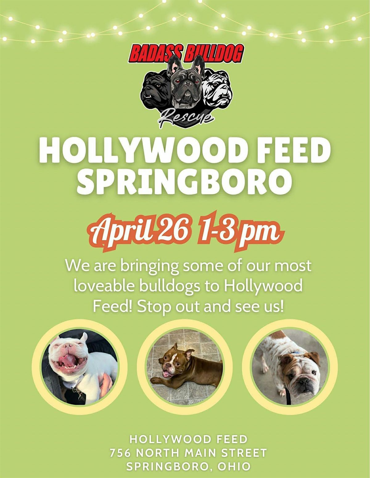 Badass Bulldog Rescue will be bringing some of their adorable adoptable bulldogs to meet & give Bulldog kisses! Come out & buy some cool merchandise & stock up on needed pet supplies!