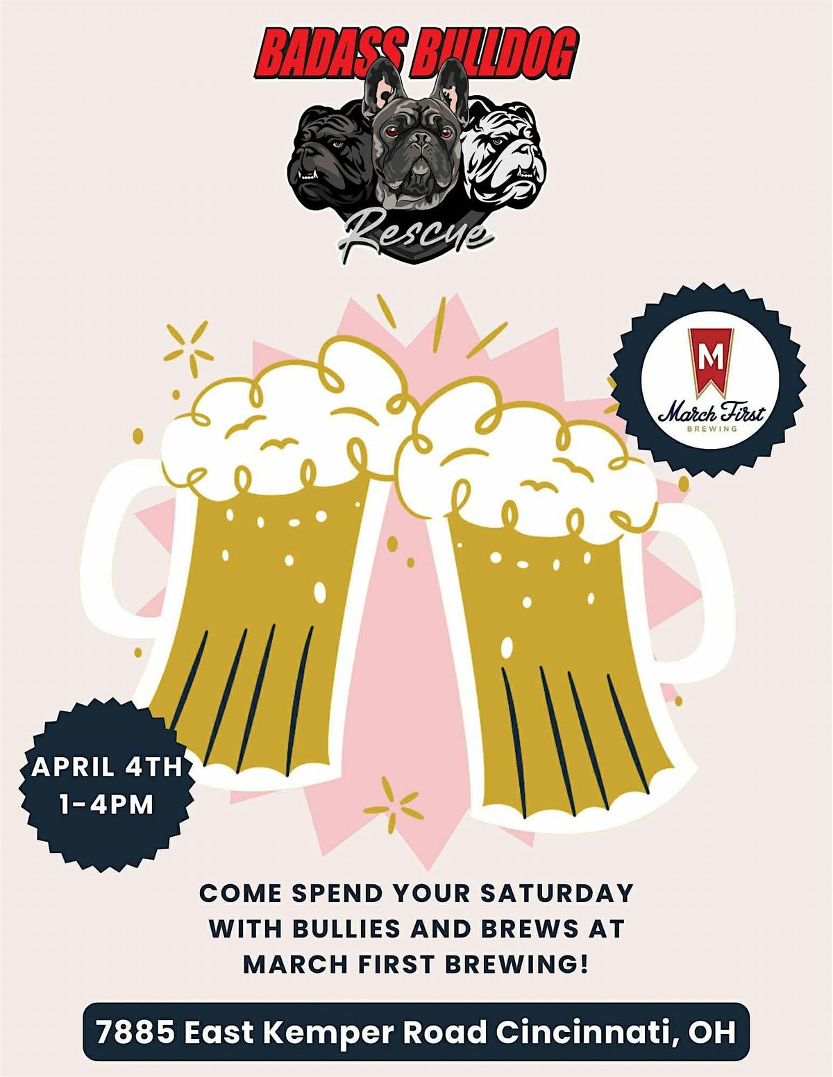 Head over to March First Brewing on April 4th from 1-4pm & grab lunch, a beer and meet some amazing Badass bulldogs! Maybe even win a raffle prize!!