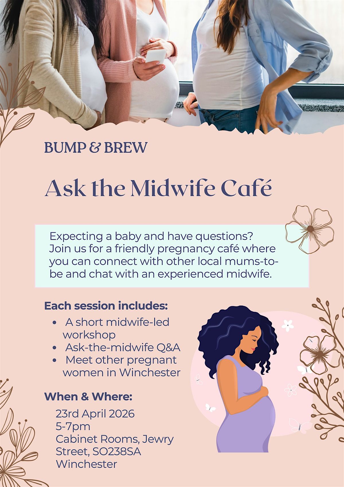 Join us for a friendly pregnancy café where you can connect with other local mums-to-be and chat with an experienced midwife.
