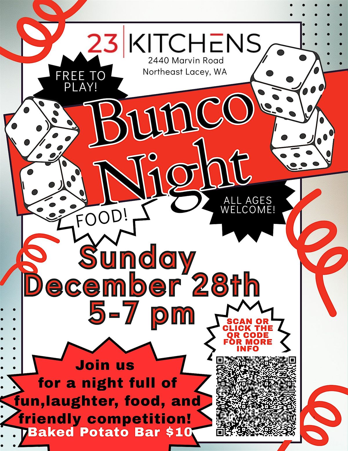 Come join us for a night of fun and food at 23 Kitchens. Get ready to roll the dice, laugh with friends, and enjoy delicious bites. Whether you're a Bunco pro or a newbie, everyone is welcome to join in on the excitement. Don't miss out on this chance to socialize, snack, and score some prizes. Mark your calendars and get ready for a memorable evening at 23Kitchens' Bunco Night!