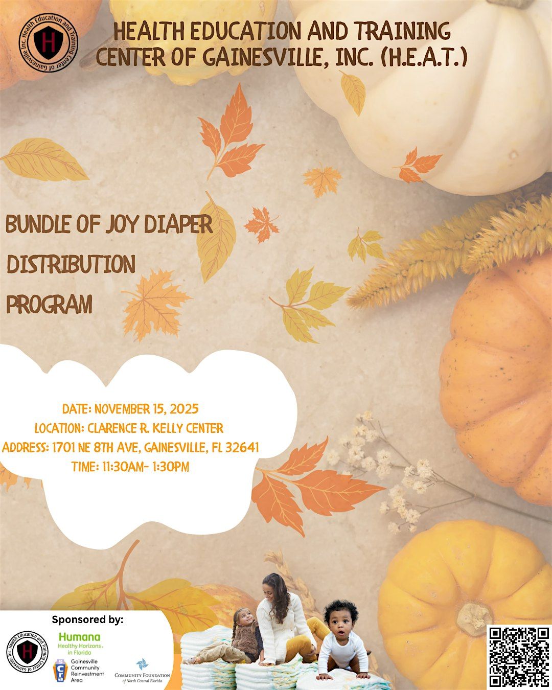 Join us for the Bundle of Joy Diaper Distribution Program at the Headquarters Library, Cone Park Library, and Clarence R. Kelly Center in Gainesville, FL, USA! We are excited to offer this in-person event where parents and caregivers can receive free diapers for their little ones. Our goal is to support families in need and provide them with essential resources. Come visit us at our location on East University Avenue and take advantage of this wonderful opportunity. Don't miss out on this chance to get diapers for your bundle of joy! This event is sponsored by Humana, Inc.