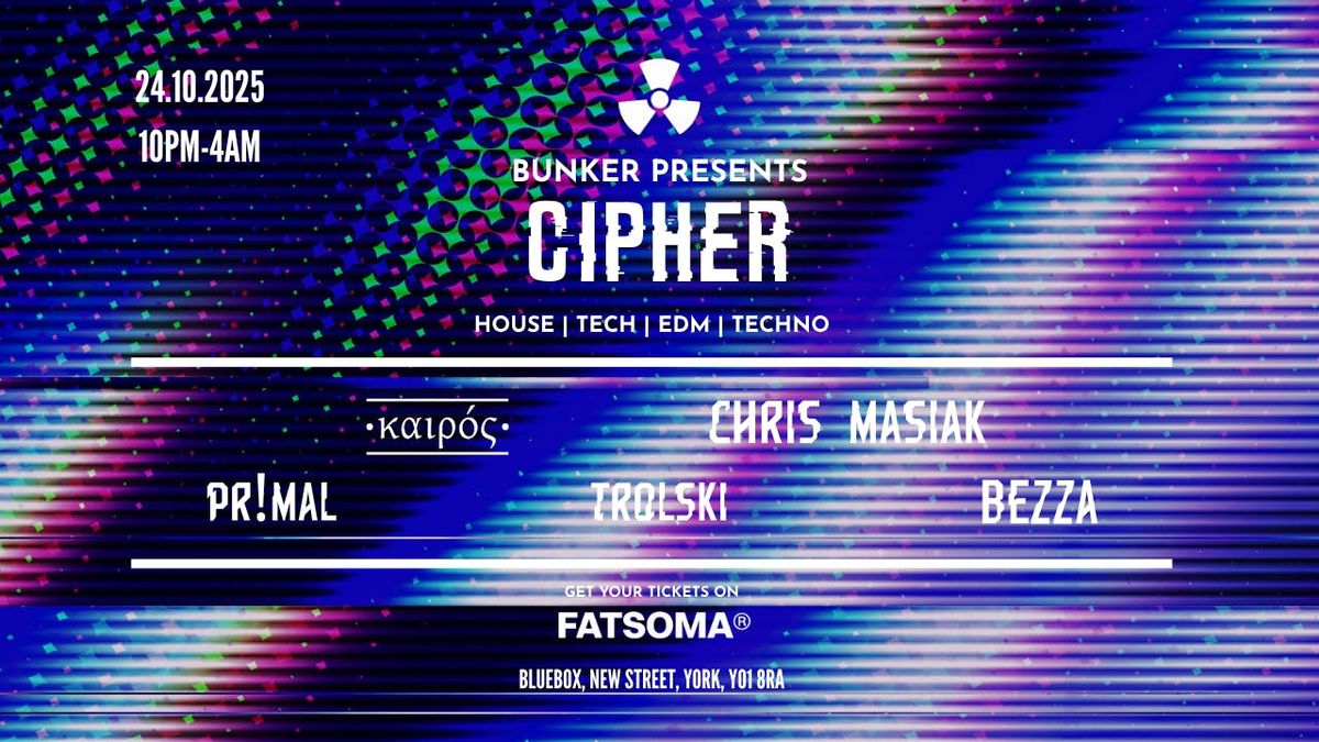 On 24th October, the Bunker opens its doors once more. Cipher is the next transmission: a night of deep house and underground EDM, driven by heavy basslines and raw energy built for the dancefloor.This isn’t spectacle. It’s a stripped-back, immersive night where sound leads and the crowd follows. A place for those who know where to find it, and those ready to lose themselves inside it.