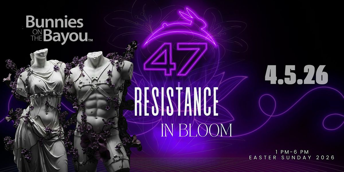 Bunnies on the Bayou returns to Seesquintennial Park in Downtown Houston on Sunday, April 5, 2026, celebrating our 47th year with a bold affirmation of life, love, and collective power under our 2026 theme, Resistance in Bloom.