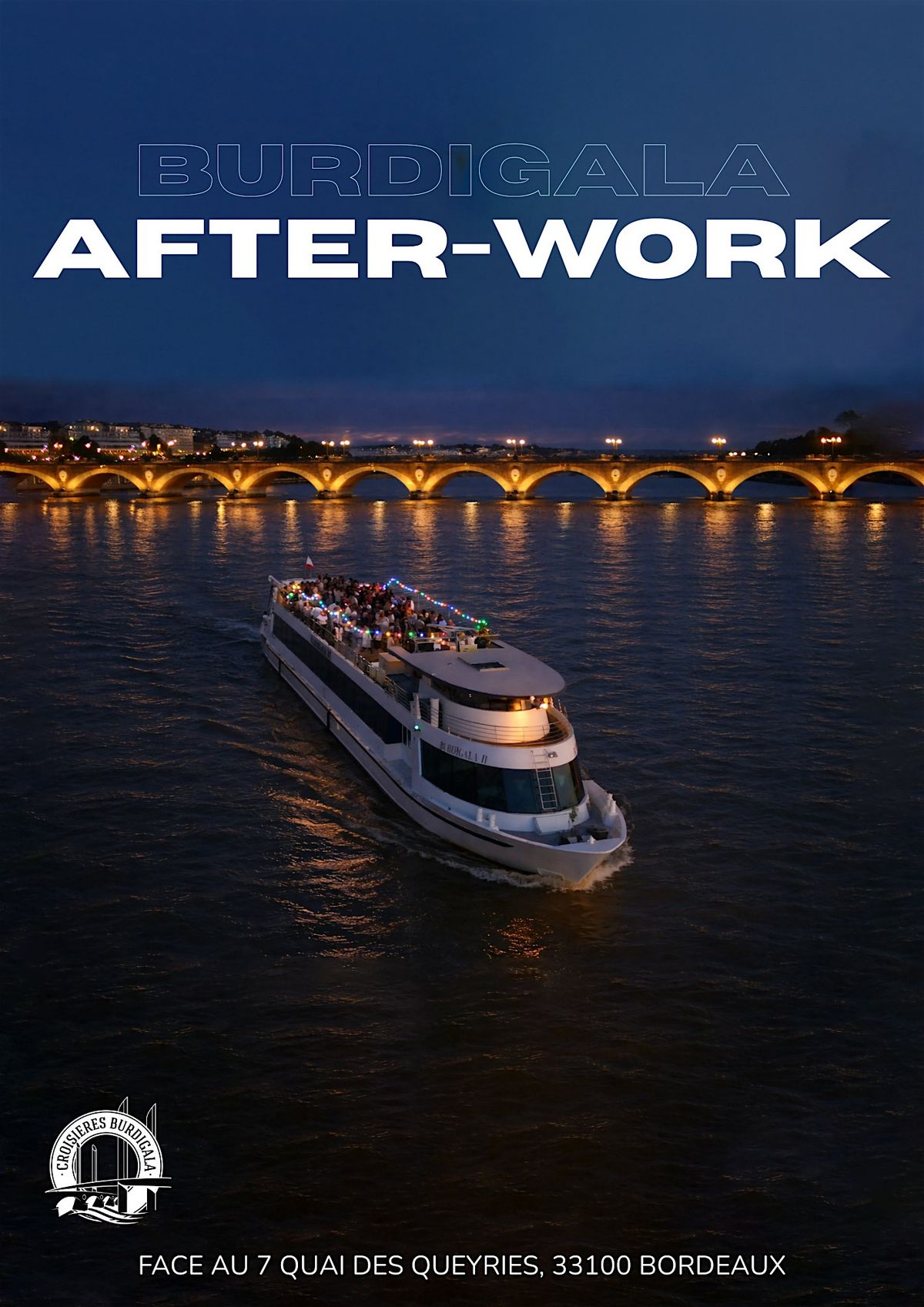 Croisières Burdigala vous invite pour un Afterwork sur l’eau ! Rejoignez-nous pour une expérience de 2h sur la Garonne, avec un verre offert et DJ set.