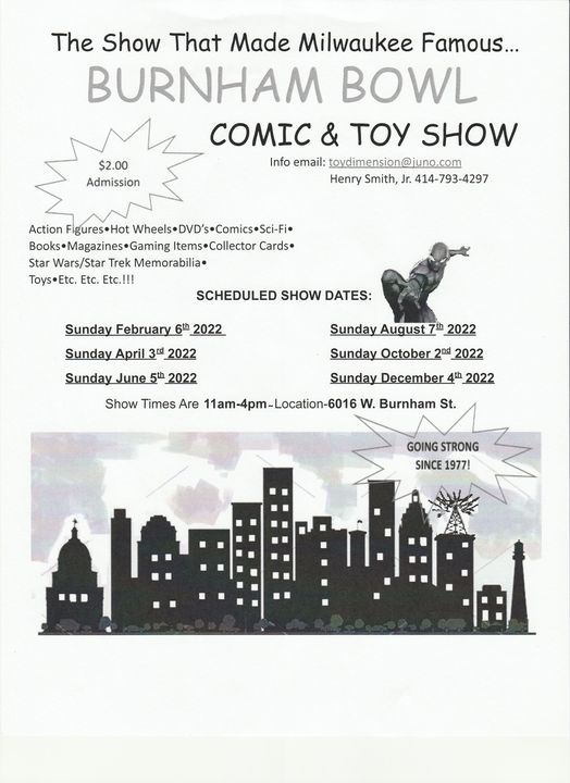 Milwaukee's longest running comic and toy show is still going strong, we will be back again for another great con 6 times this year, on the first sunday of each even # month 11AM to 4 PM, Admission $2We will have thousands of comic books and toys and also Magic the Gathering cards MTG