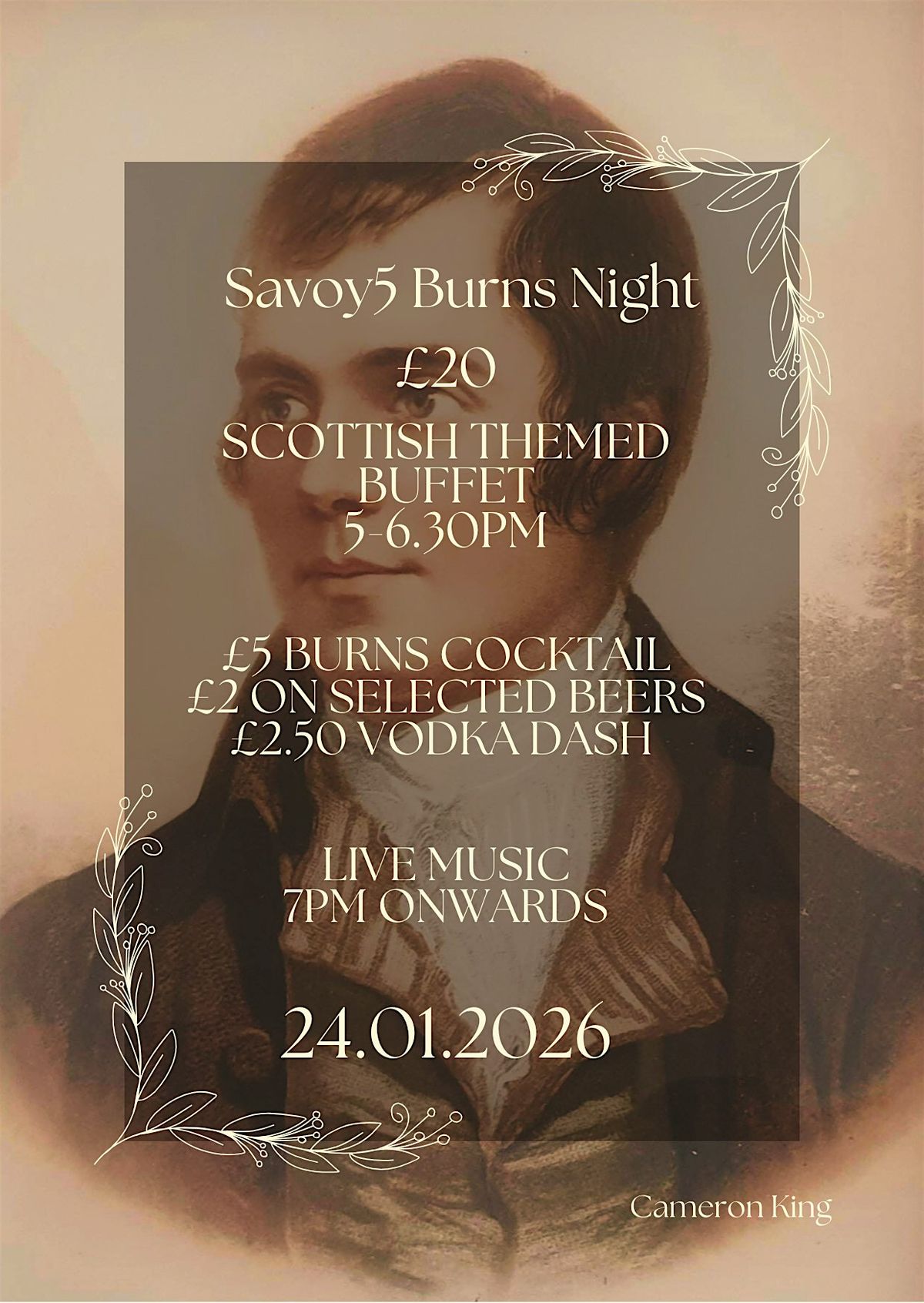 Get ready for an amazing evening celebrating the legendary Scottish poet Robert Burns. This in-person event promises good food, great company, and a night full of fun, tradition, and live music. Whether you're a Burns fan or just in for a cool cultural experience, don't miss out!