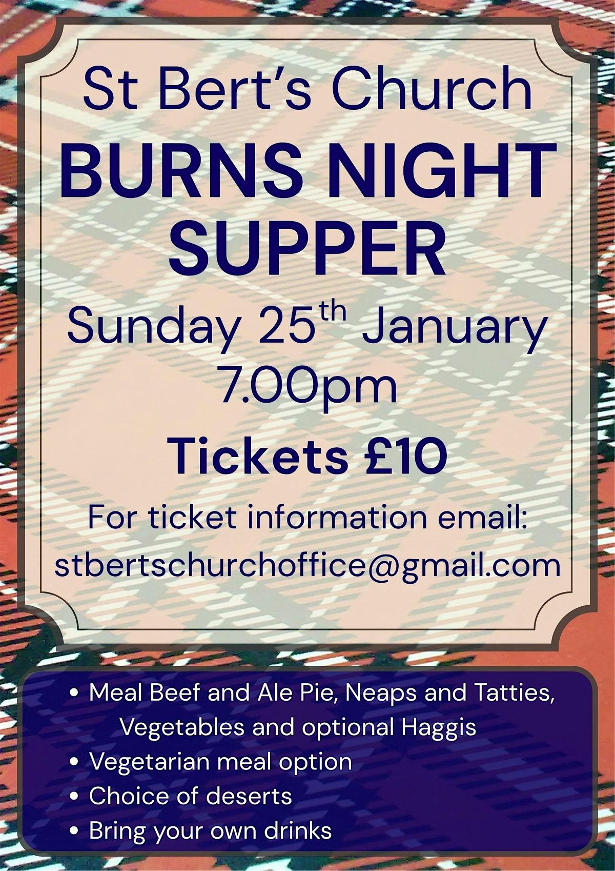 St Bert's would like to welcome you to our annual Burns Night celebration.About this Event
