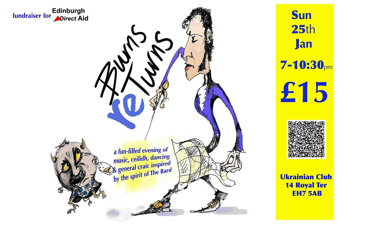 An evening of music and poetry inspired by Burns, between 6-10pm on Sunday 25th January, raising funds for EDINBURGH DIRECT AID.