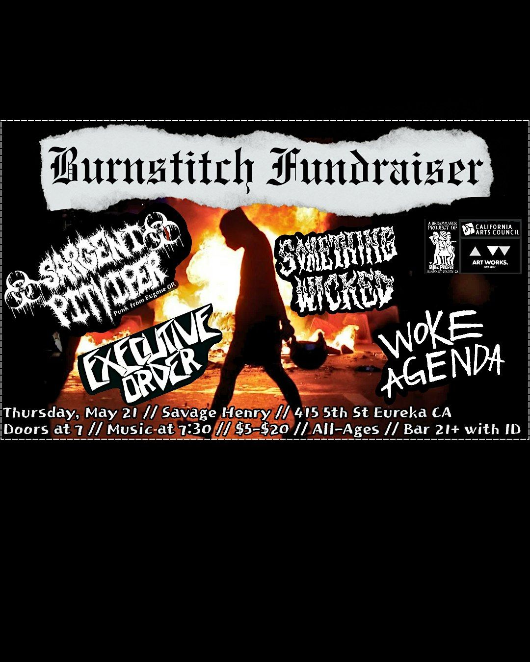 Burnstitch Artist Collective is an Ink DreamMaker Project dedicated to building community through art. We do our best to make all events inclusive and accessible to everyone, regardless of age, income, and disability status. Proceeds from this event will support our community outreach efforts, as well as our upcoming Juneteenth Punk Show and Against All Odds fest.