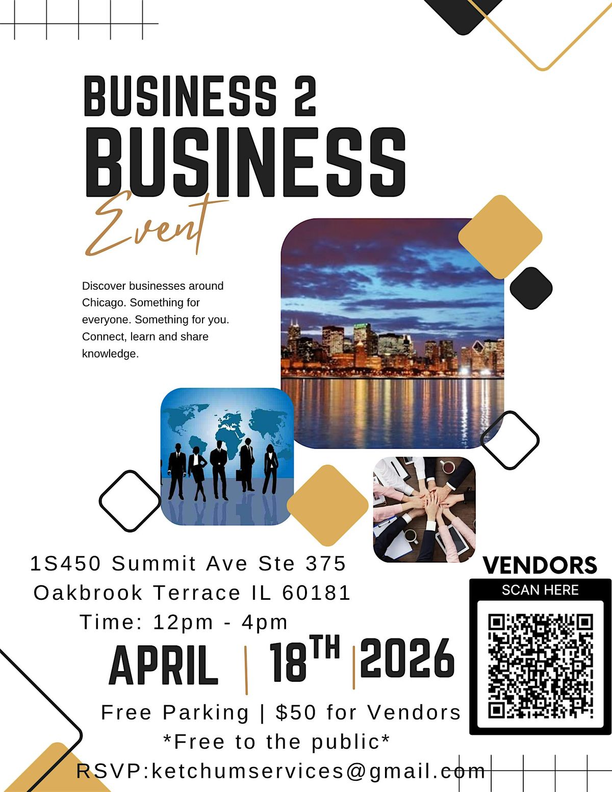 Join us for a powerful B2B Vendor Networking Event in Chicago, bringing together local entrepreneurs, small business owners, and vendors from across the city.