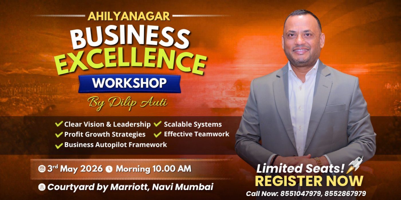 Join the Business Excellence Workshop by Dilip Auti — a powerful and practical session created specially for Entrepreneurs, Business Owners, SME & MSME founders, and Self-Employed Professionals who want to build a structured, scalable, and high-performance business.