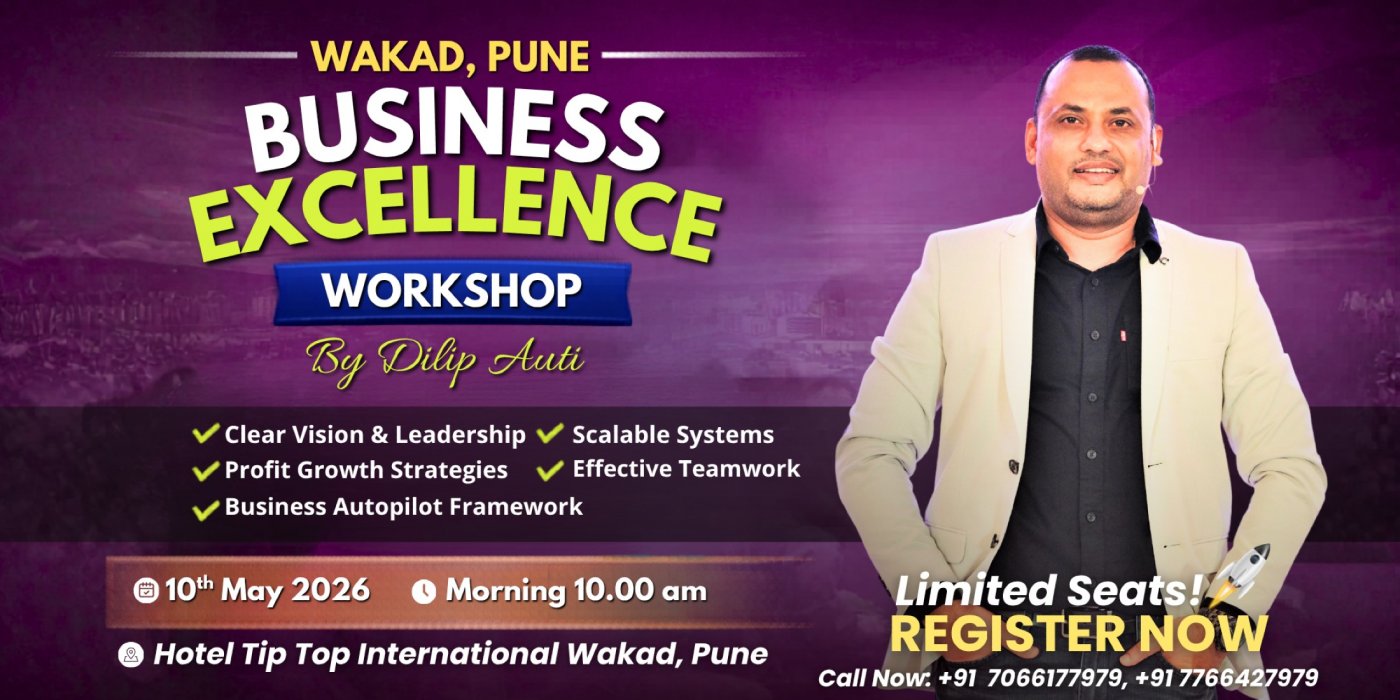 Join the Business Excellence Workshop by Dilip Auti — a powerful and practical session created specially for Entrepreneurs, Business Owners, SME & MSME founders, and Self-Employed Professionals who want to build a structured, scalable, and high-performance business.