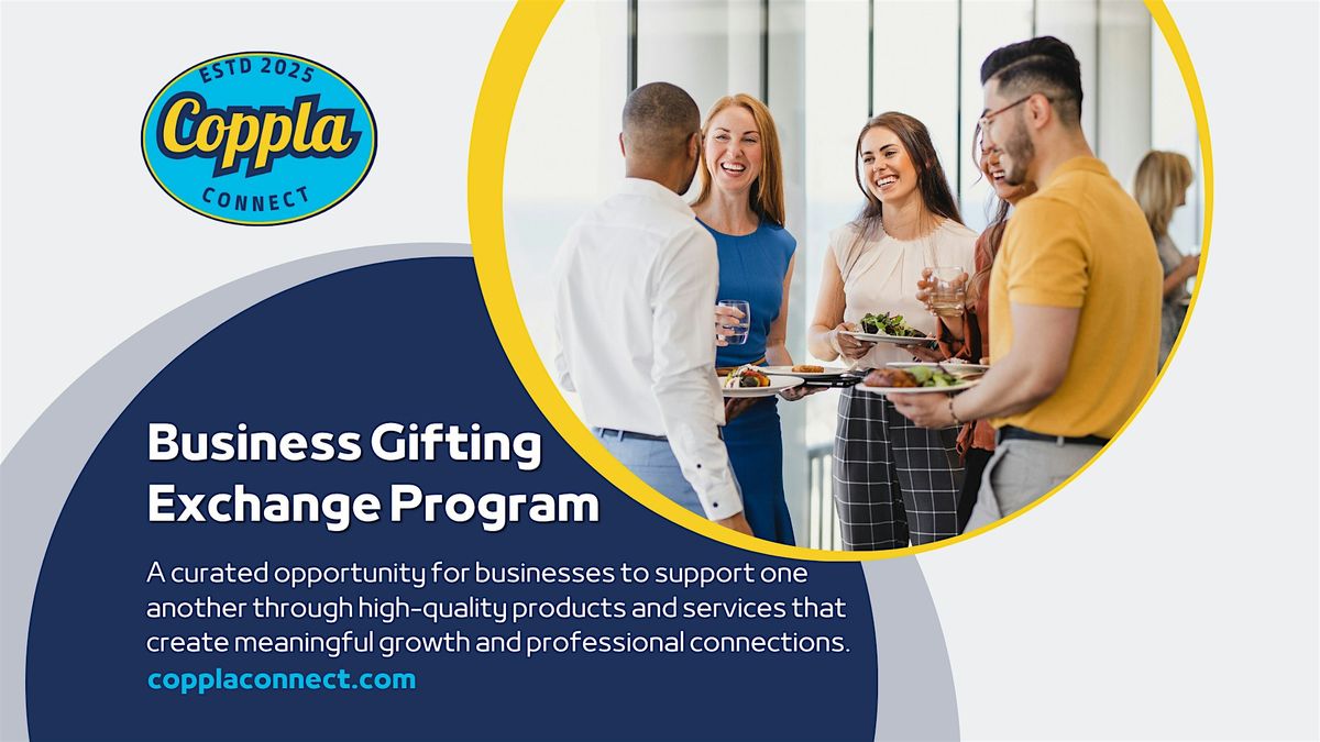 The Coppla Business Gifting Exchange is a curated business-to-business experience designed to create meaningful connections through intentional generosity. Participating businesses invest in one another by offering high-quality products and services valued at $250 or more, strengthening relationships while creating real professional impact. Businesses may apply to give or receive in this exchange, and will be matched by Coppla staff.