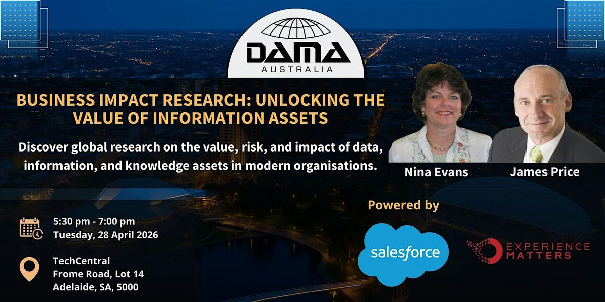 Join DAMA Adelaide for an exclusive presentation unveiling findings from the groundbreaking Business Impact Research Project, delivered by Associate Professor Nina Evans and James Price.