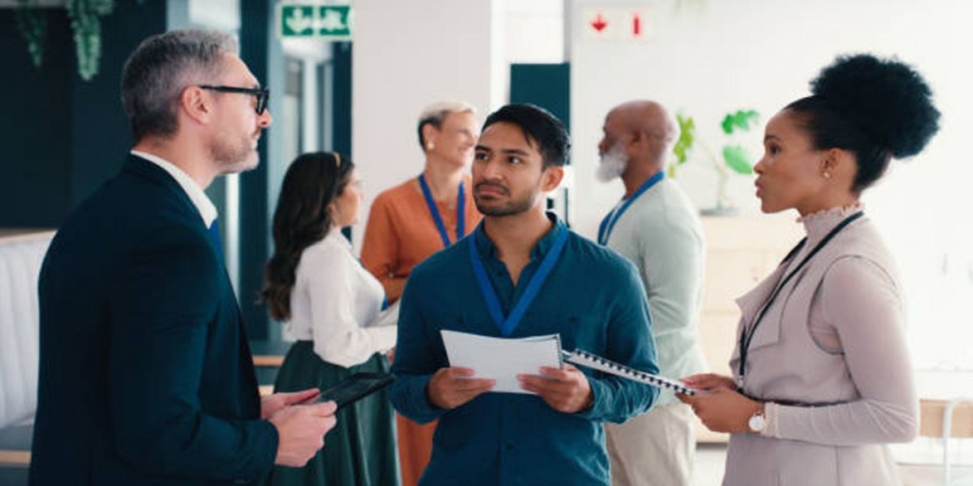 We start the event at 6.00pm with a warm welcome. Having an open-minded approach is ideal, as it will enable you to establish new connections.