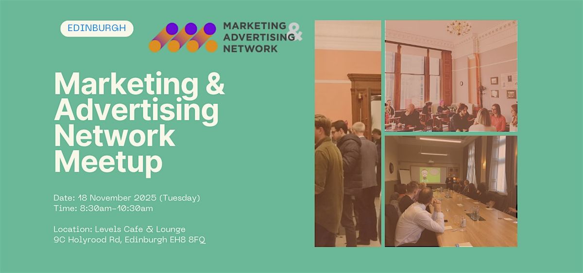 This is a business networking event in Central Edinburgh. Meet startup founders, entrepreneurs, business professionals. This is an informal networking with focus on Marketing and Advertising.