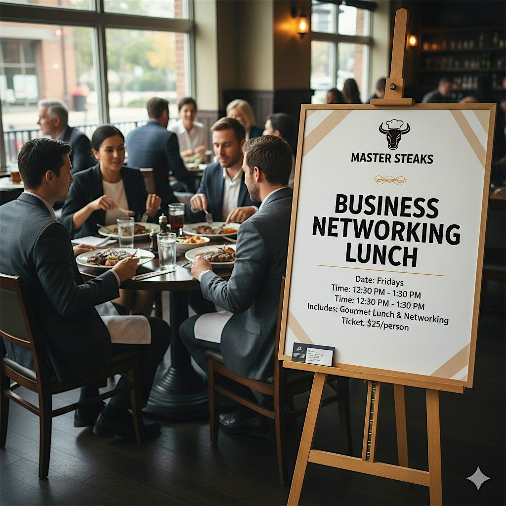 This weekly business networking lunch at Master Steaks provideds a valuable platform for small business owners, professionals, and local networkers to connect and foster growth within the local business community.