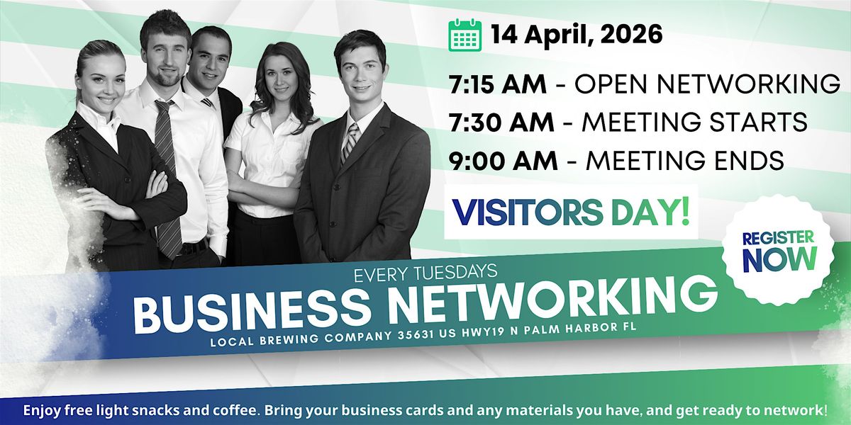 Join us for a special Business Networking Visitors Day at LBC – Palm Harbor. This in-person event is a perfect opportunity to expand your professional network, meet like-minded professionals, share ideas, and build meaningful connections that can help grow your business.